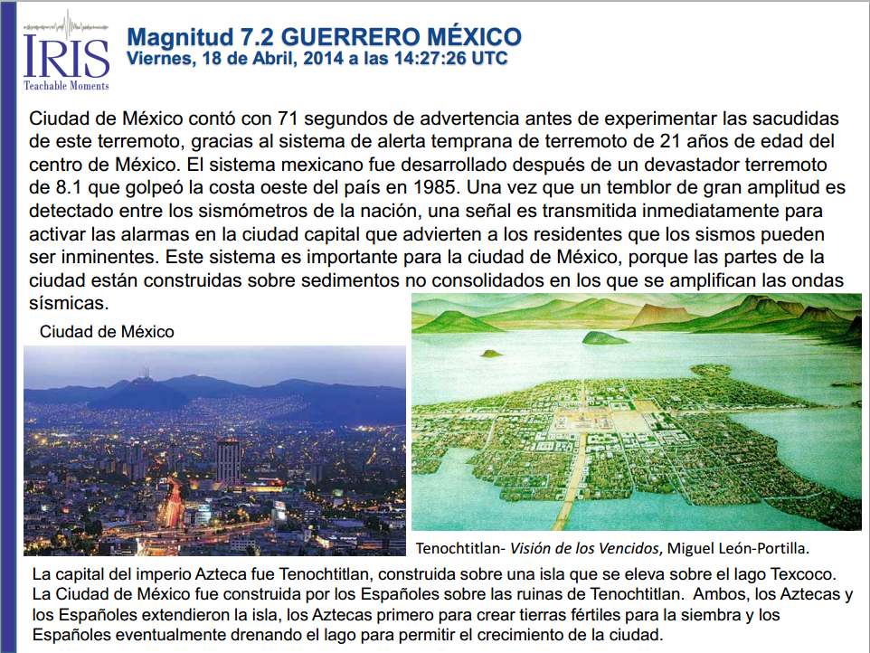 Incorporated Research Institution for Seismology (IRIS) publica información del desempeño de la Alerta Sísmica en el sismo del viernes santo 18 de abril de 2014