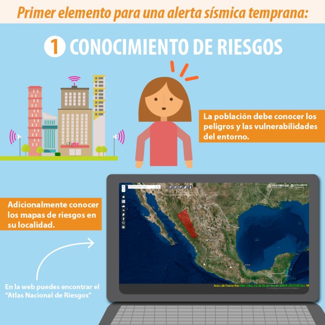 Te invitamos a que conozcas más de los cuatro elementos de la alerta temprana para sismos SASMEX a través de infografías que se estarán publicando.