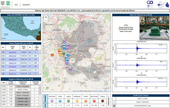La RACM cuenta con un mapa interactivo en el cual se pueden consultar: las estaciones catalogadas por la intensidad que se midió en el sitio que registró el sismo (con su respectivo acelerograma); la fecha, hora, magnitud y los kilómetros de distancia del epicentro a la CDMX.