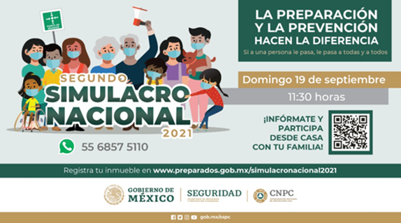 Participa en el simulacro que se llevará a cabo el próximo domingo 19 de septiembre a las 11:30 hrs. que iniciará al activarse la alerta sísmica del Sistema de Alerta Sísmica Mexicano SASMEX. En la CDMX se escuchará en los más de 12 000 altavoces del gobierno de la ciudad.