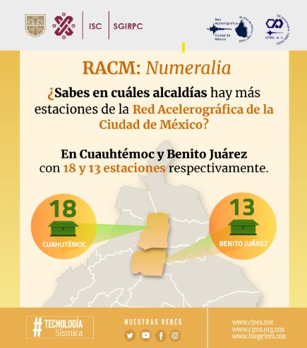 La Red Acelerográfica de la Ciudad de México RACM es una red para el monitoreo y registro de sismos en la CDMX. La RACM mide la aceleración del suelo de la CDMX y zona conurbada en tres zonas distintas de este territorio: Zona I, firme o de lomas, Zona II o de transición y Zona III o de lago.