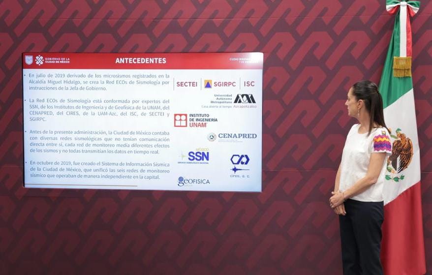Dentro de la Red ECOs, se constituyó la red de sismología en la que se integran el Instituto de Ingeniería de la UNAM, la Universidad Autónoma Metropolitana UAM, unidad Azcapotzalco, el Centro de Instrumentación y Registro Sísmico A. C. entre otros organismos; que empezaron a trabajar en todo lo que significaban los microsismos para la ciudad pero sobre todo un diagnóstico. Se informó que existían ya redes para monitoreo, que no estaban comunicadas y tampoco tenían comunicación en tiempo real entre ellas. Se actualizaron 29 estaciones, 105 son nuevas y 103 se estandarizaron. Dijo que ahora ya se tiene una infraestructura actualizada y comunicación entre todos los integrantes, se ha caracterizado la sismicidad de la CDMX y hoy se pueden generar mapas de intensidades para que la autoridad tome decisiones y se incorpore la información de la Red ECOS de sismología y que permite tener un mayor conocimiento de la sismicidad. Esta información permite un mejor diseño de los inmuebles en CDMX, una mejora en las localizaciones epicentrales en sismos y microsismos. Hace la comunicación más rápida y fácil de las unidades de gestión integral de riesgos.