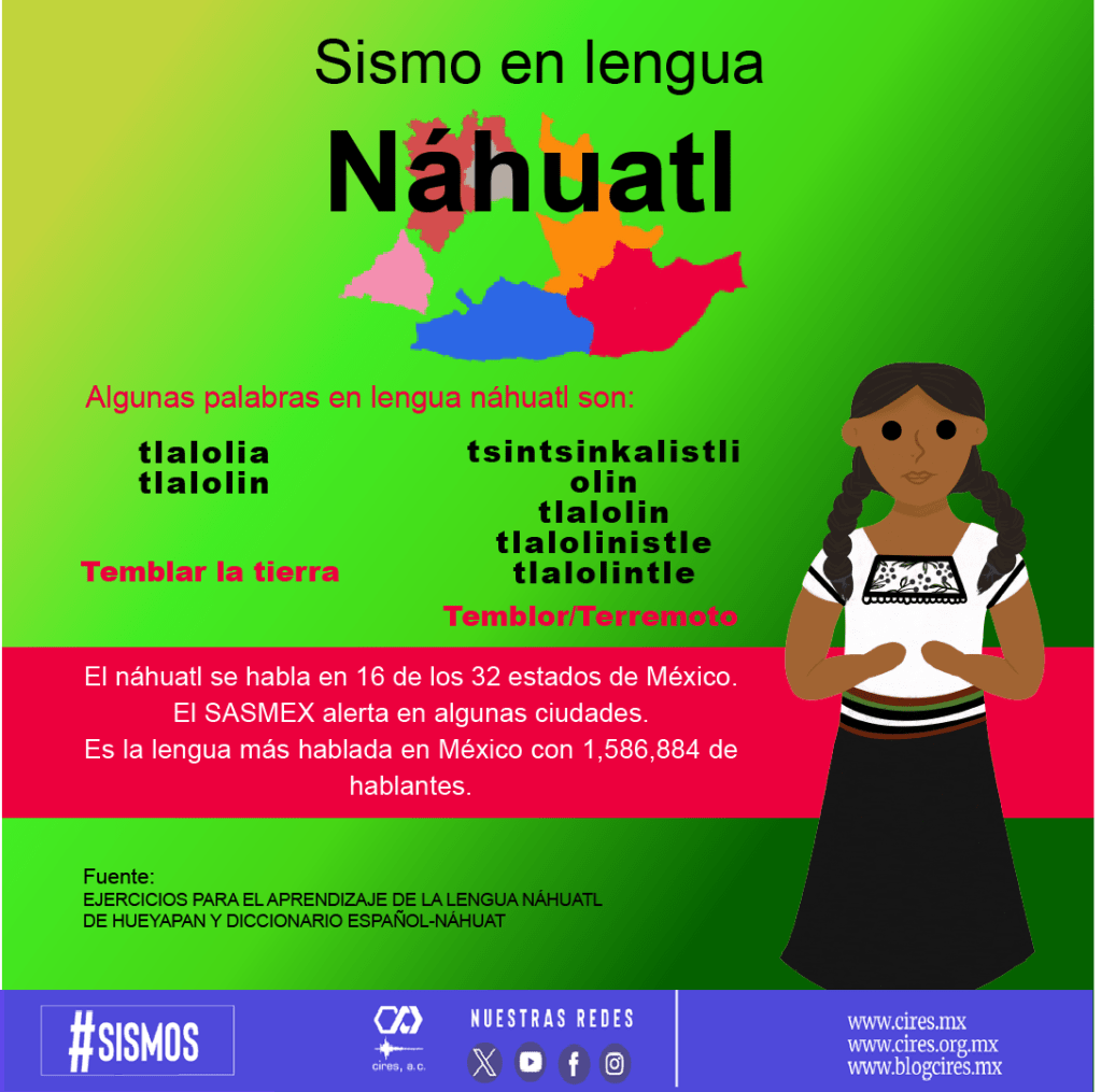 Continuamos con las entregas sobre cómo se escribe la palabra “sismo” en algunas lenguas indígenas. La infografía que corresponde a esta cuarta entrega es la lengua náhuatl.