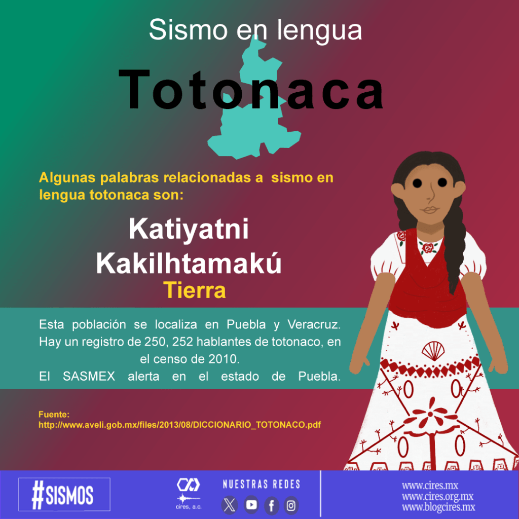 Seguimos con las entregas sobre cómo se escribe la palabra “sismo” en algunas lenguas indígenas. La infografía que corresponde a esta entrega es la lengua totonaca.