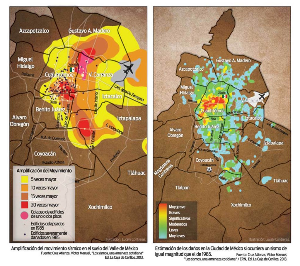 Esto ocurre porque las ondas sísmicas tienen diferentes efectos, dependiendo del tipo de suelo del lugar al que llegan. Por ejemplo, en el Valle de México, las ondas sísmicas pueden amplificarse o atenuarse. ¿Por qué? Por los “efectos de sitio”, que es un término que utilizan los sismólogos, para referirse a las diferencias que se dan en el subsuelo.