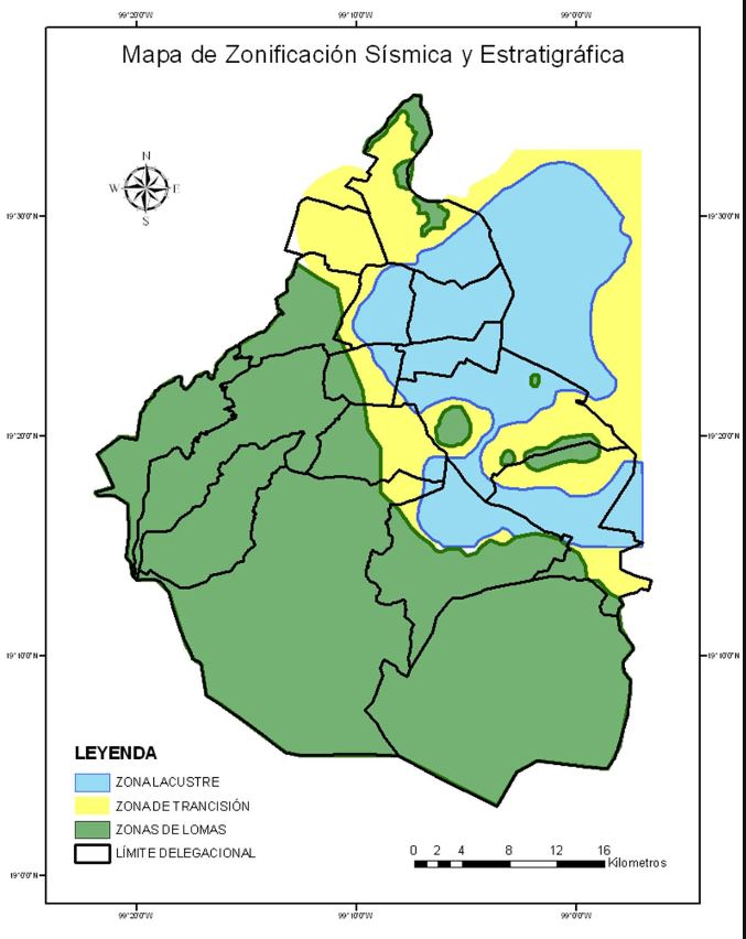 La Ciudad de México fue dividida en tres zonas de acuerdo con el tipo de suelo: Zona I: De lomas o firme, Zona II: de transición y Zona III: de lago.