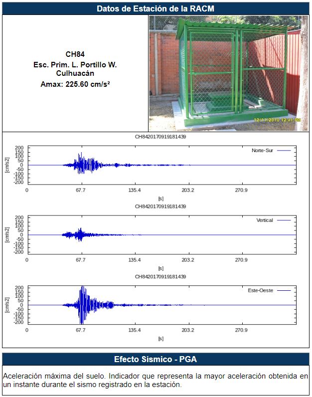 Figura 1 Registro de mayor aceleración obtenido por la RACM del sismo del 19 de septiembre de 2017