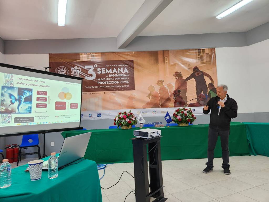 El CIRES, A.C. tuvo la oportunidad de participar con el tema “Esfuerzos para Mitigar el Riesgo Sísmico”, en la conferencia impartida por el Dr. Armando Cuéllar se compartieron diferentes temas entre ellos el origen del CIRES, A. C. y su objetivo principal: la mitigación del riesgo sísmico. Para ello se explicó sobre: La Red Acelerográfica de la Ciudad de México (RACM), el Sistema de Alerta Sísmica Mexicano (SASMEX) y el Sistema Acelerométrico Digital para Estructuras (SADE); resaltando las funciones, evolución y estado actual de estas herramientas. Se hizo énfasis en la tecnología que hace funcionar el servicio de alertamiento, características y criterios para activar la alerta sísmica. Adicionalmente, el representante de CIRES, A.C. explicó cómo gracias a los sistemas resilientes del SASMEX, se pudo superar rápidamente la situación que afectó el sistema ante los huracanes Otis y John. Se resolvieron las dudas sobre los temas expuestos de los asistentes durante y después de la conferencia.