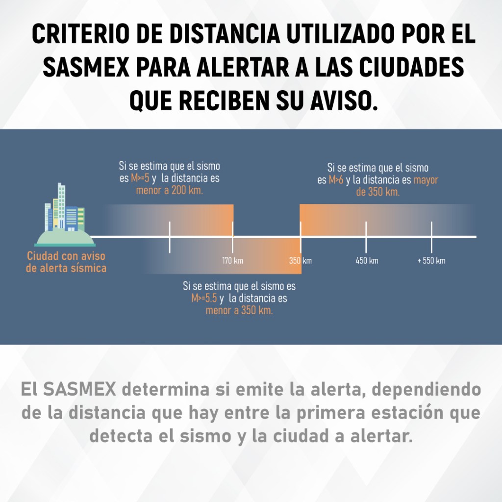 Aquí te mostramos el criterio de distancia para que el SASMEX envíe su aviso.