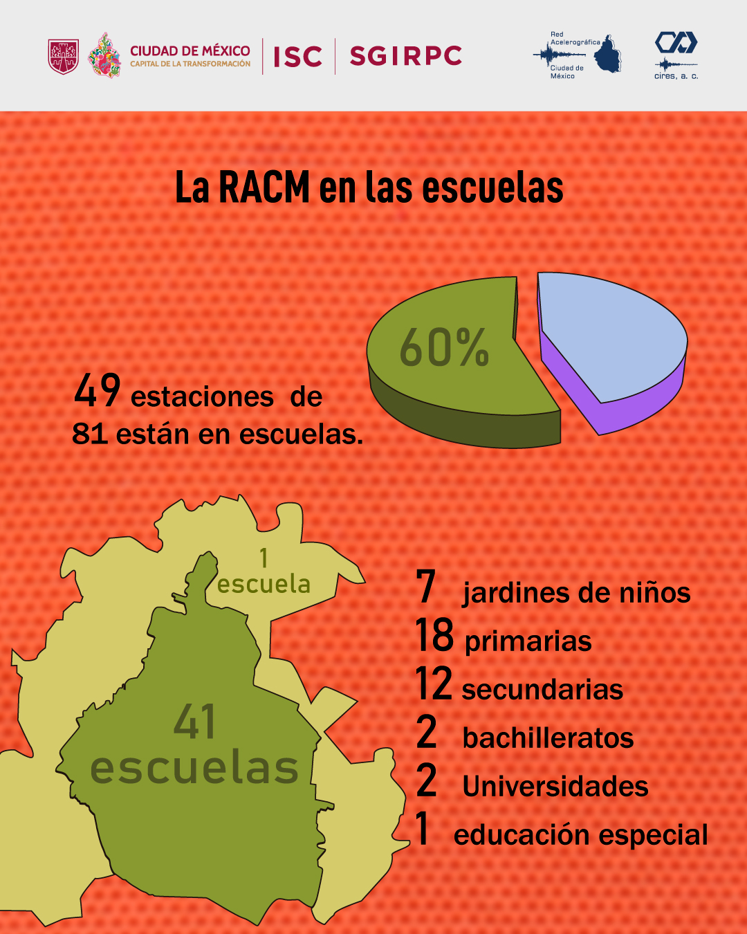 La Red Acelerográfica de la Ciudad de México (RACM) tiene sus 81 estaciones instrumentadas en la CDMX y parte del Estado de México. Están instaladas en escuelas, áreas públicas, cerca de hospitales y edificios de gobierno.