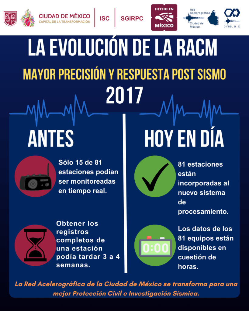 El sismo del 19 de septiembre de 2017 marcó un antes y un después para la Red Acelerográfica de la Ciudad de México (RACM), un sistema administrado por el Centro de Instrumentación y Registro Sísmico (CIRES) que ha sido clave para el estudio del comportamiento del suelo capitalino durante los movimientos telúricos. A raíz de aquel evento, la red experimentó diversas modificaciones tecnológicas que hoy la convierten en una herramienta más precisa y eficiente para la protección civil y la investigación sísmica.