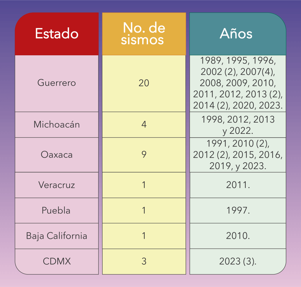 Los sismos ocurridos en marzo registrados tienen su epicentro en varios estados del país como se puede apreciar en la siguiente tabla: