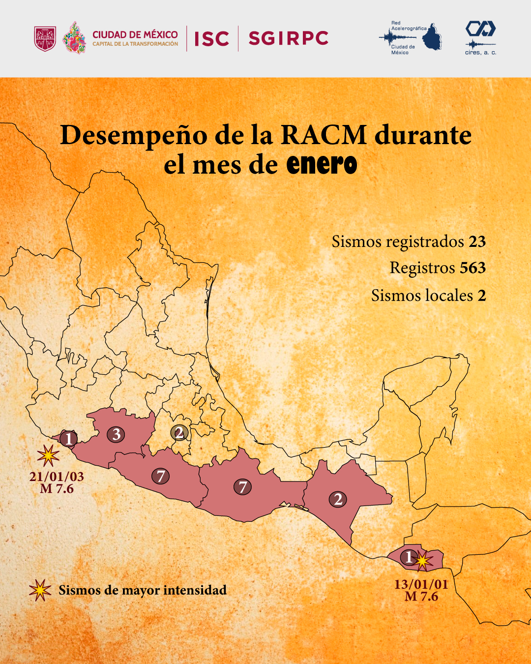 Los sismos alertados por el SASMEX a lo largo de 34 años, en el mes de enero fueron 13.