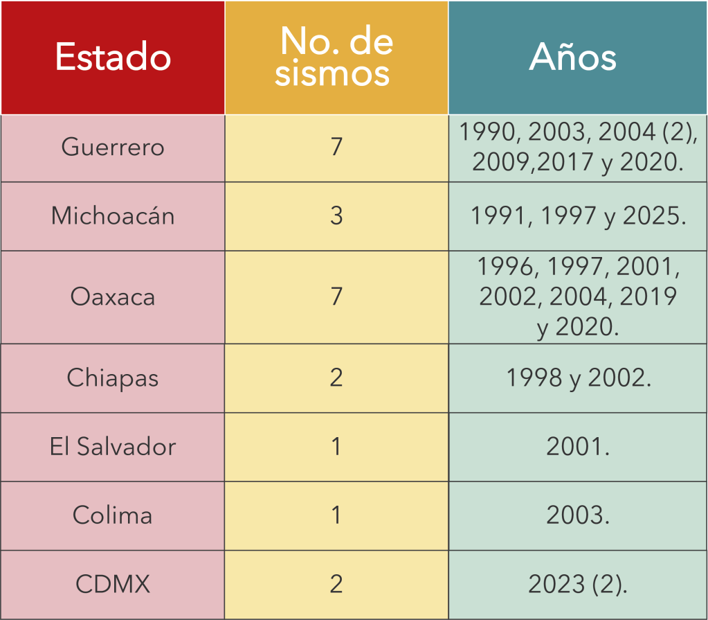 El primer lugar es para Oaxaca con 9 sismos; Michoacán con 2 sismos, Guerrero y Veracruz con 1 sismo registrado en su territorio.