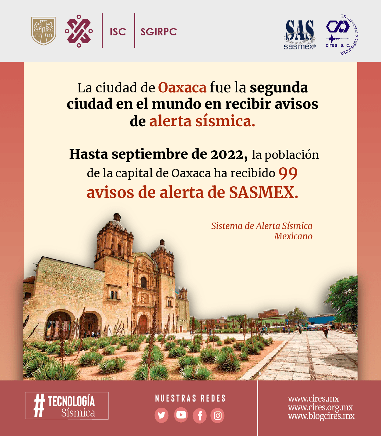 En Oaxaca puedes escuchar el sonido de alerta a través de estaciones de radio AM/FM y receptores multi-alerta EAS-SAME. Es importante señalar que la Ciudad de Oaxaca fue la primera ciudad en el mundo en alertar a la población a través de altavoces, actualmente tiene 13 altoparlantes públicos.