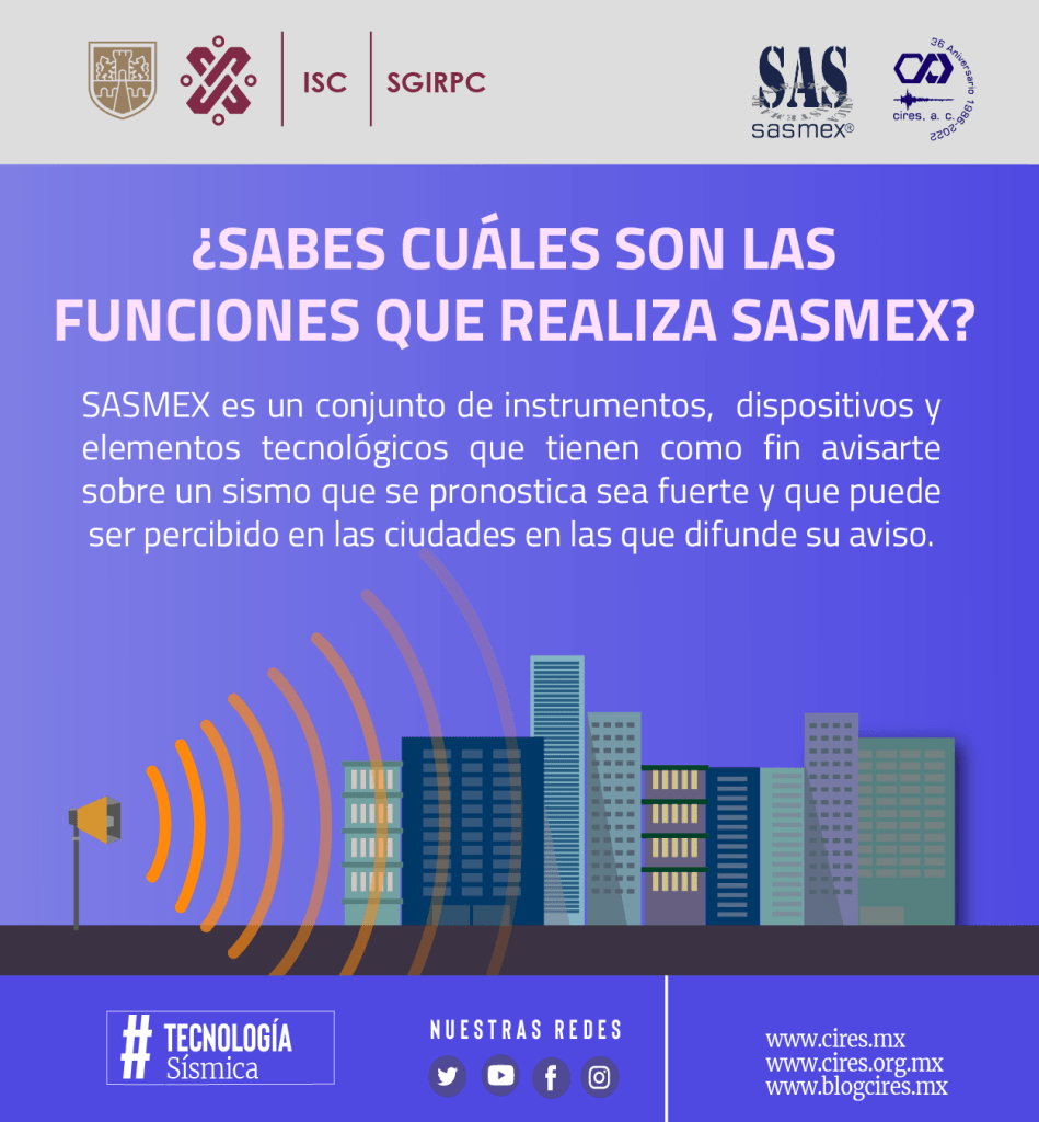 Puedes enterarte más sobre la historia. desarrollo, desempeño y funcionamiento de SASMEX a través de sus redes sociales.
