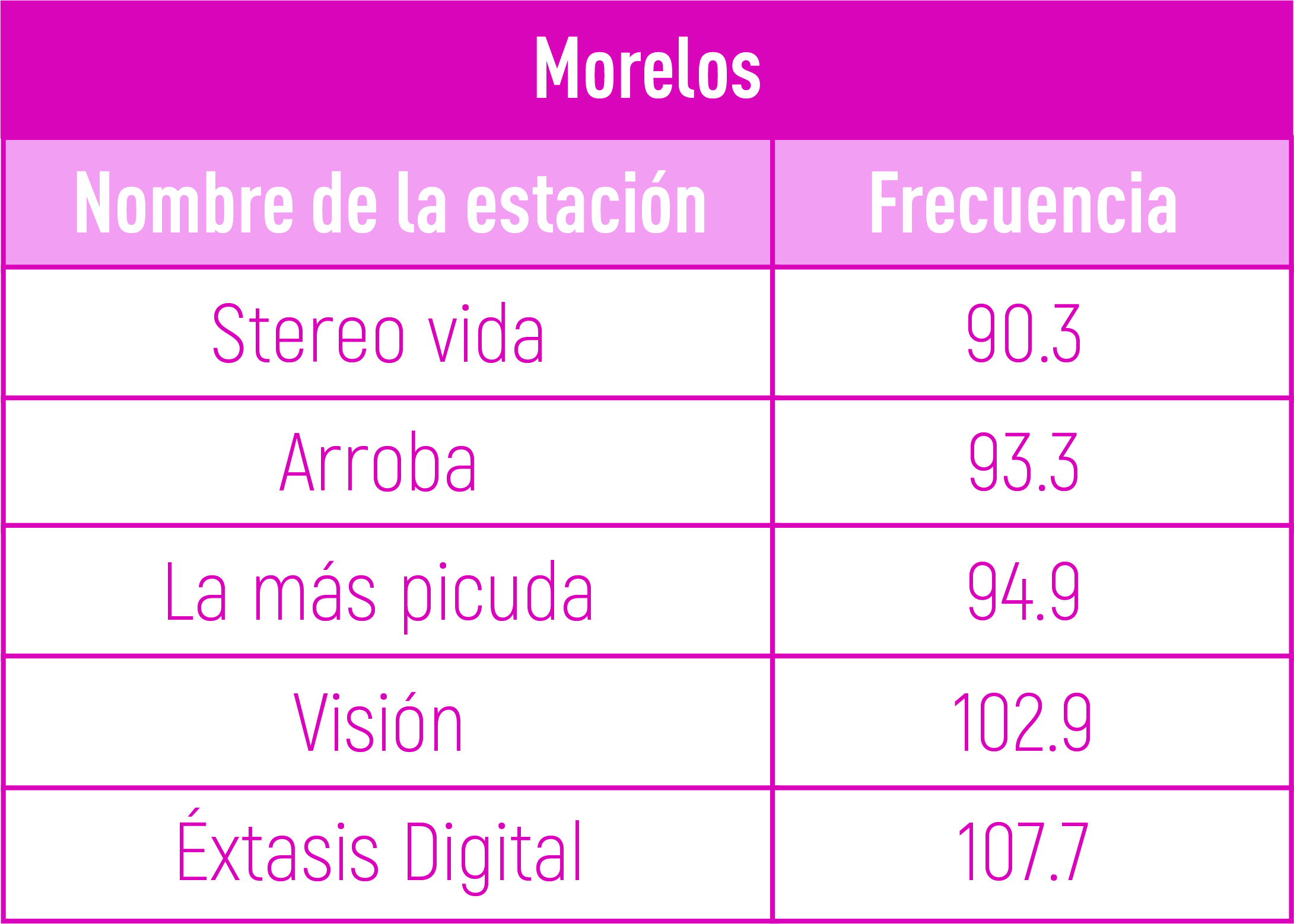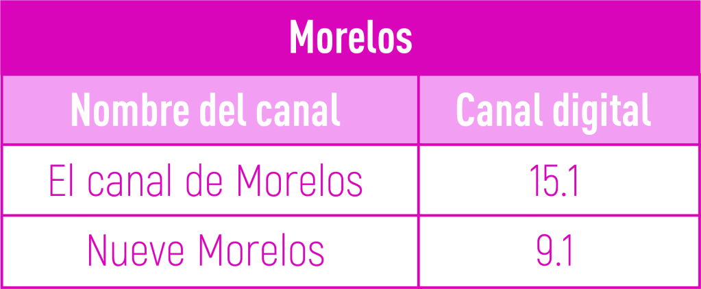 Morelos cuenta con dos canales de televisión: El Canal de Morelos y el Canal Nueve Morelos. Y puedes escuchar el aviso en 5 estaciones de radio.
