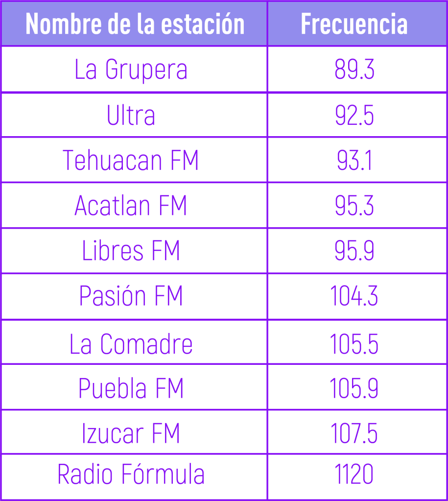 Puebla cuenta con el canal: Televisa Puebla y 10 estaciones de radio en las que puedes escuchar su aviso en:
