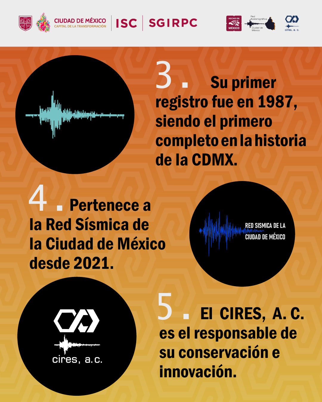 - Su primer sismo registrado el 12 de marzo de 1987, es el primer registro sísmico completo en la CDMX.