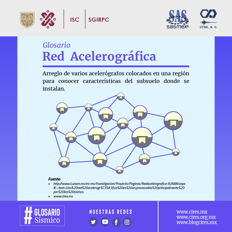 Las redes acelerográficas a través de sus registros, contribuyen al mayor conocimiento del comportamiento dinámico de los suelos. Para el caso de la Ciudad de México, el Centro de Instrumentación y Registro Sísmico A.C. tiene a su cargo 81 estaciones de la Red Acelerográfica de la Ciudad de México (RACM) que están integradas a una red más grande, la Red Sísmica de la Ciudad de México.