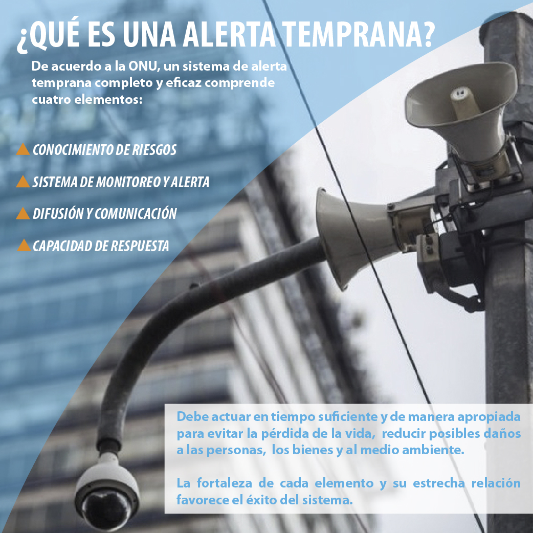 La ONU especifica que un sistema de alerta temprana completo y eficaz comprende cuatro elementos interrelacionados, que abarcan el conocimiento de peligros y vulnerabilidades: