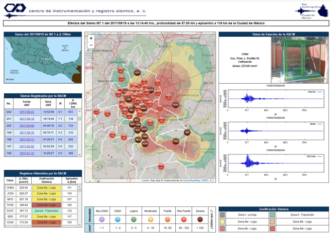 La Red Acelerográfica de la Ciudad de México RACM mantiene en servicio 81 acelerógrafos en la CDMX y área metropolitana. Instrumentos que monitorean los diferentes tipos de suelo representativo en diversas zonas.