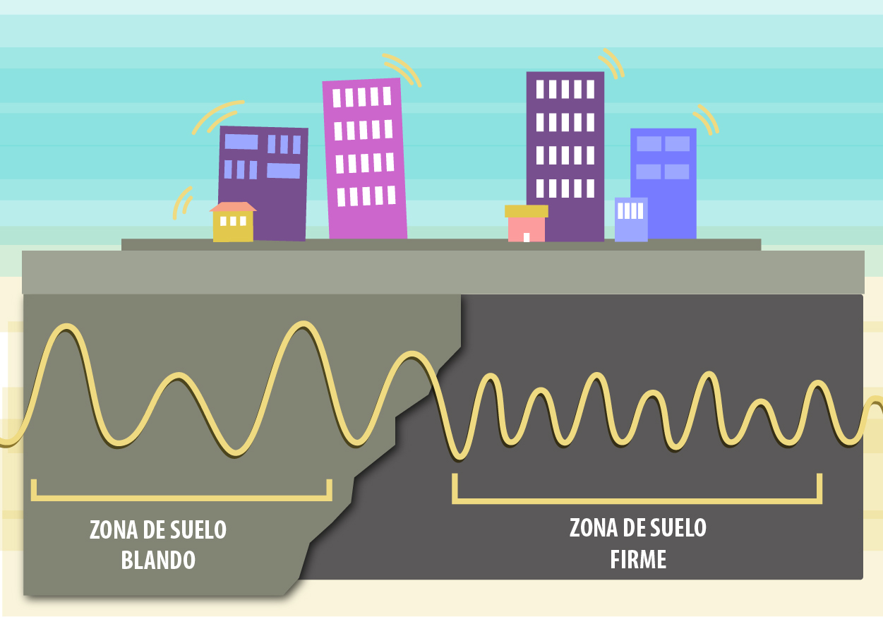 Por ejemplo, en la Ciudad de México, los tres tipos de suelo que la componen determinan las propiedades de las ondas sísmicas. Ya que percibirás diferente un sismo dependiendo del tipo de suelo en el que te encuentres, no es lo mismo que durante un sismo estés en el Centro Histórico en la alcaldía Cuauhtémoc, donde el suelo es de tipo lacustre y se detecta mayor movimiento sísmico por las altas aceleraciones del suelo; a que te encuentres en el centro de Tlalpan que tiene suelo firme o de Lomas, donde la ampliación de las ondas sísmicas es reducida por lo que el movimiento se percibe menor y los edificios están más estables.