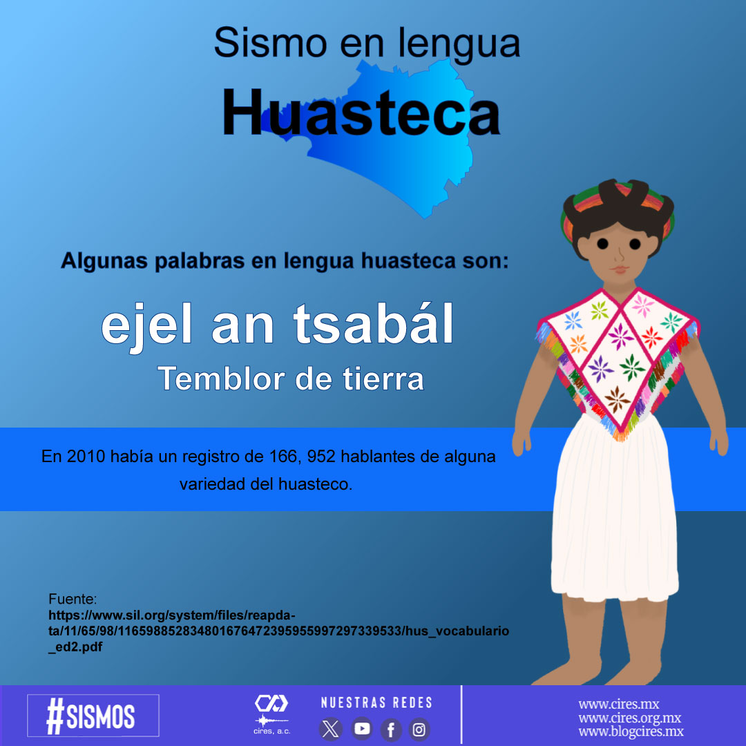 Acompáñanos nuevamente con las entregas sobre cómo se escribe la palabra “sismo” en algunas lenguas indígenas. La infografía que corresponde a esta entrega es el huasteco.