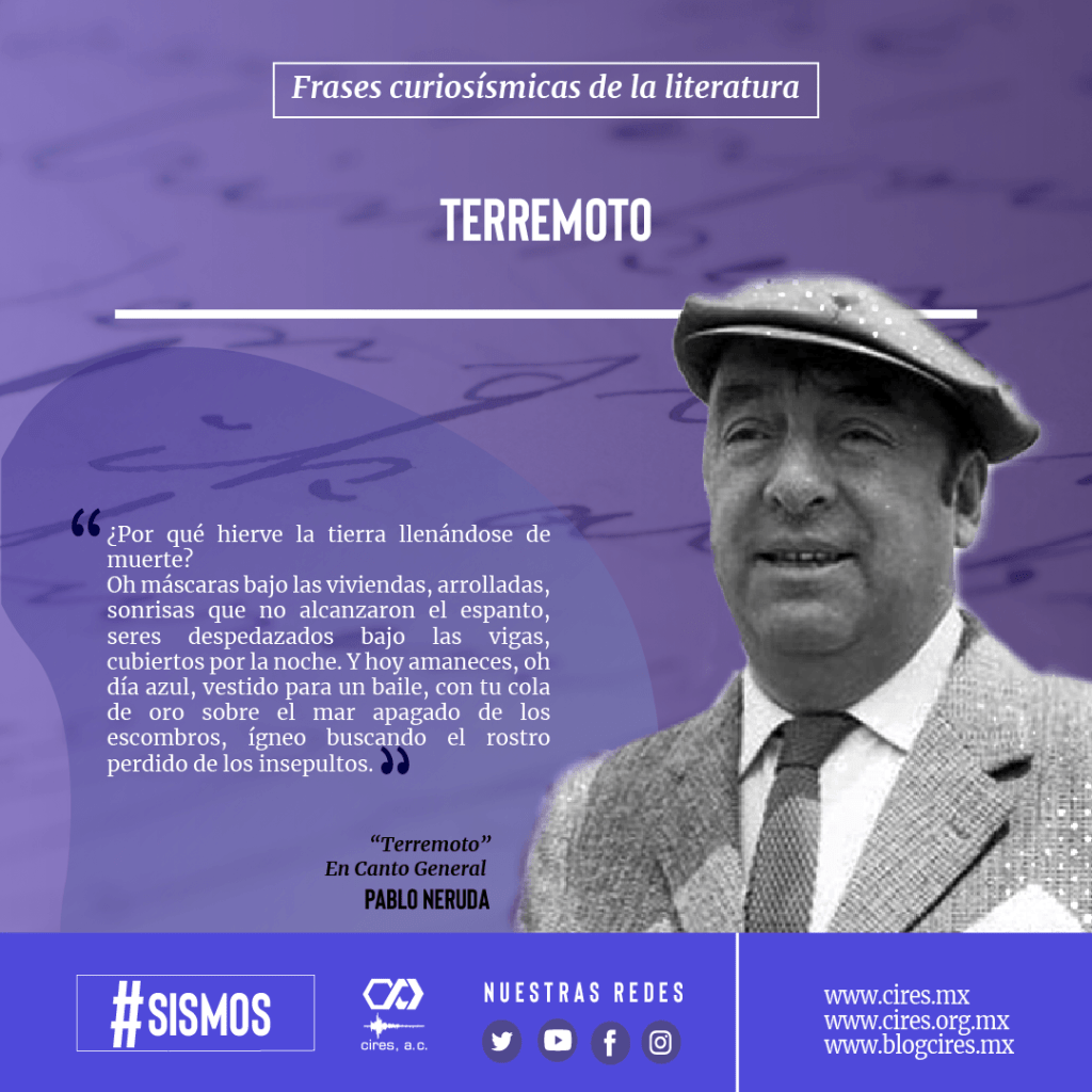 Y aquí rescatamos un fragmento de su Oda a Valparaíso en la que describe a esa ciudad chilena, como un ser que siente, que sufre y que trabajosamente se recupera de la energía de la tierra, cuando un terremoto lo devastó el jueves 16 de agosto de 1906, cerca de las 8 de la noche.