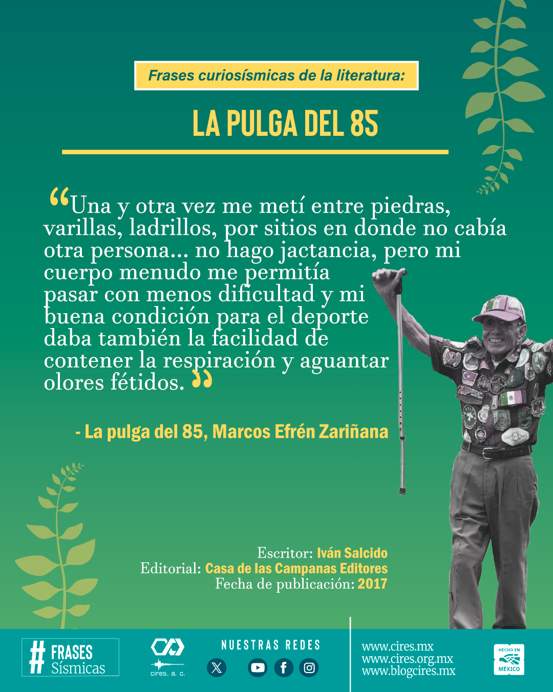 En el libro biográfico La Pulga del 85, el cronista, escritor, investigador y diseñador editorial Ivan Salcido, se convierte en entrevistador, interlocutor y en ocasiones un confidente de Marcos Efrén Zariñana, quien le comparte los momentos de alegrías y tristezas más trascendentes de su vida, a la vez que muestra sus sentimientos más personales, ante el sufrimiento y la injusticia posteriores a los incendios, huracanes y sismos que le tocó vivir.