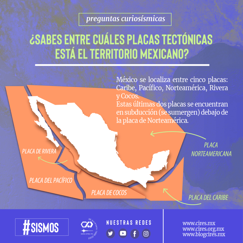Algunas de estas placas se subducen (sumergen) una debajo de la otra, en algunos estados de la República Mexicana, lo que hace que se generen sismos en esta llamada zona de subducción, principalmente en Jalisco, Colima, Michoacán, Guerrero, Oaxaca y Chiapas.