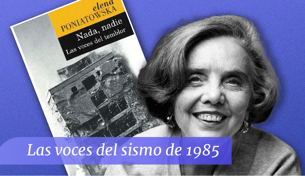 La obra de Elena Poniatowska “Nada, nadie: Las voces del temblor” narra en viva voz de los afectados las situaciones que vivieron durante y después de los sismos de 1985 en la Ciudad de México. Las historias reales se enmarcan dentro de la tristeza, impotencia y horror; pero contrarrestadas por la respuesta solidaria de los sobrevivientes y los voluntarios que sin pensarlo se lanzaron con lo que tenía a mano para ayudar al rescate de los afectados de manera incondicional.