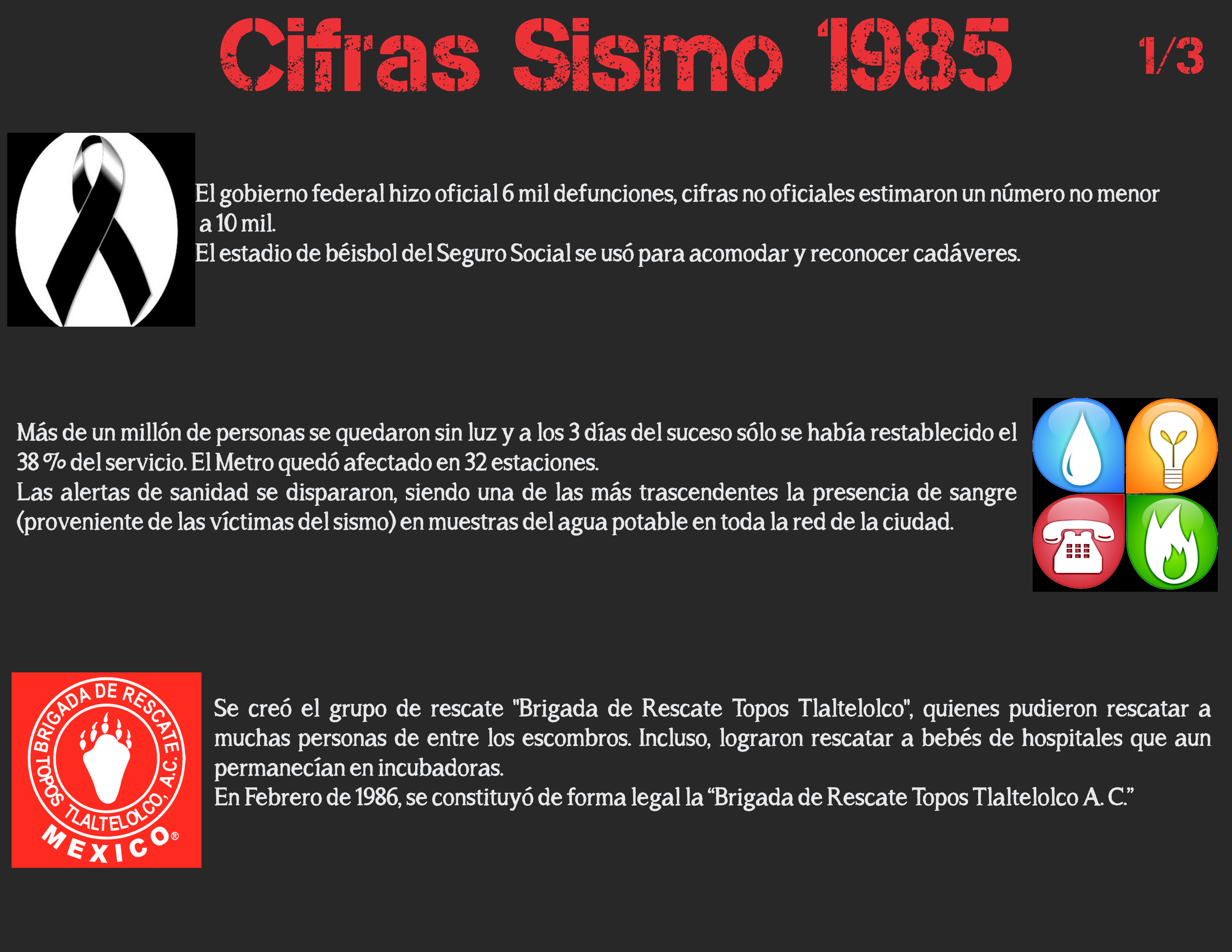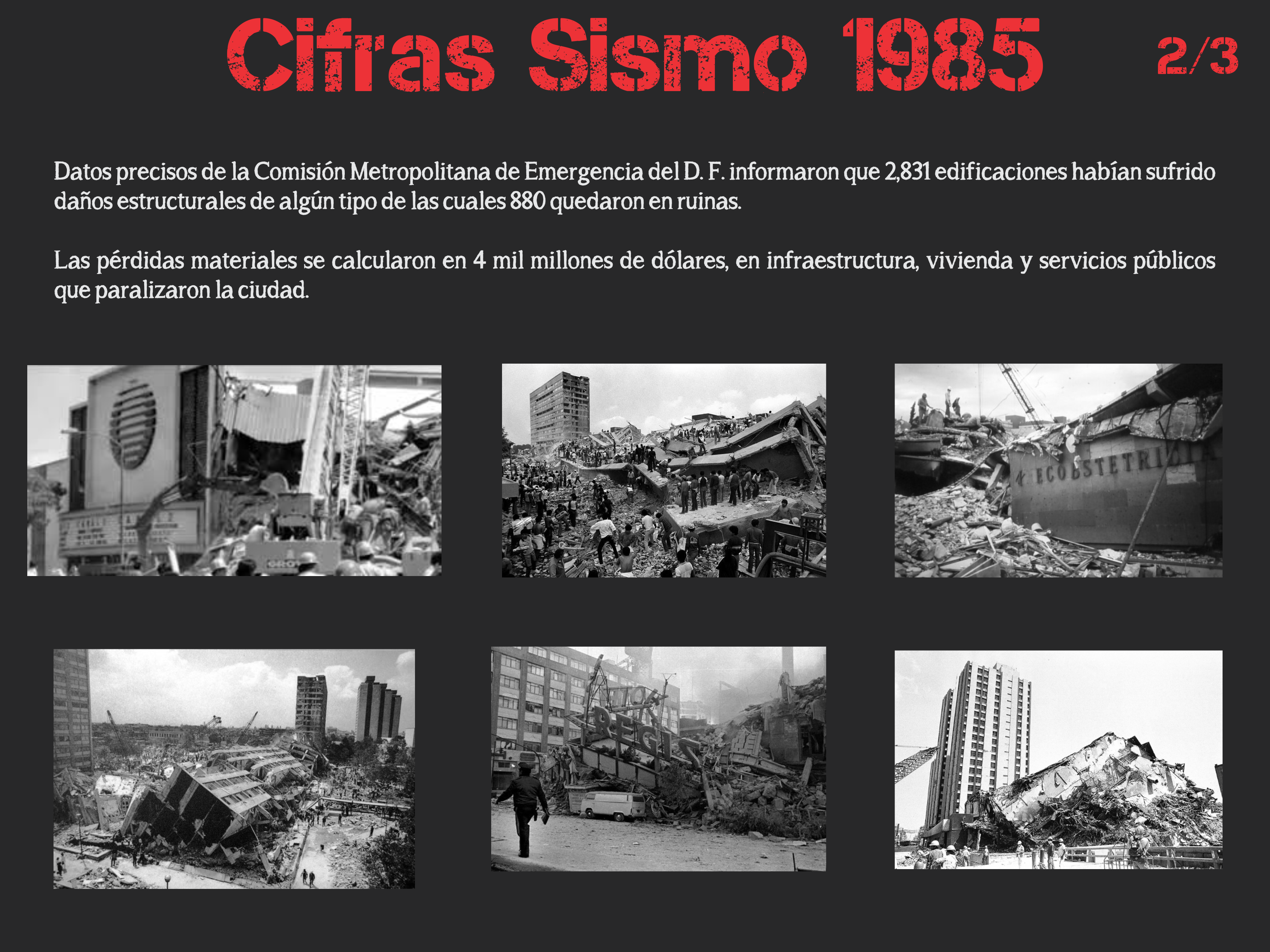 –Porque me recuerdan los del 85. Al menor movimiento de tierra vuelvo a ver cómo caían los platos del trastero, los techos desplomándose; oigo los gritos de los vecinos y a mi madre llamando a mi hermana Sandra. Ella tenía ocho años. Su escuela quedaba a dos cuadras de la casa. Podía irse caminando solita. Lo hizo la mañana del l9 de septiembre. Desde entonces no volvimos a verla.