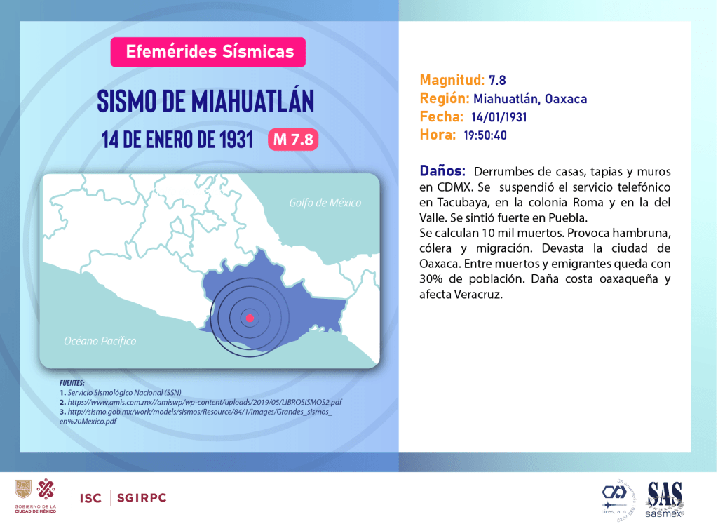 Por la noche del 14 de enero de 1931, acontece uno de los sismos más devastadores en los Valles Centrales y Sierra Sur de la Verde Antequera, (Oaxaca), con magnitud de 7.8.